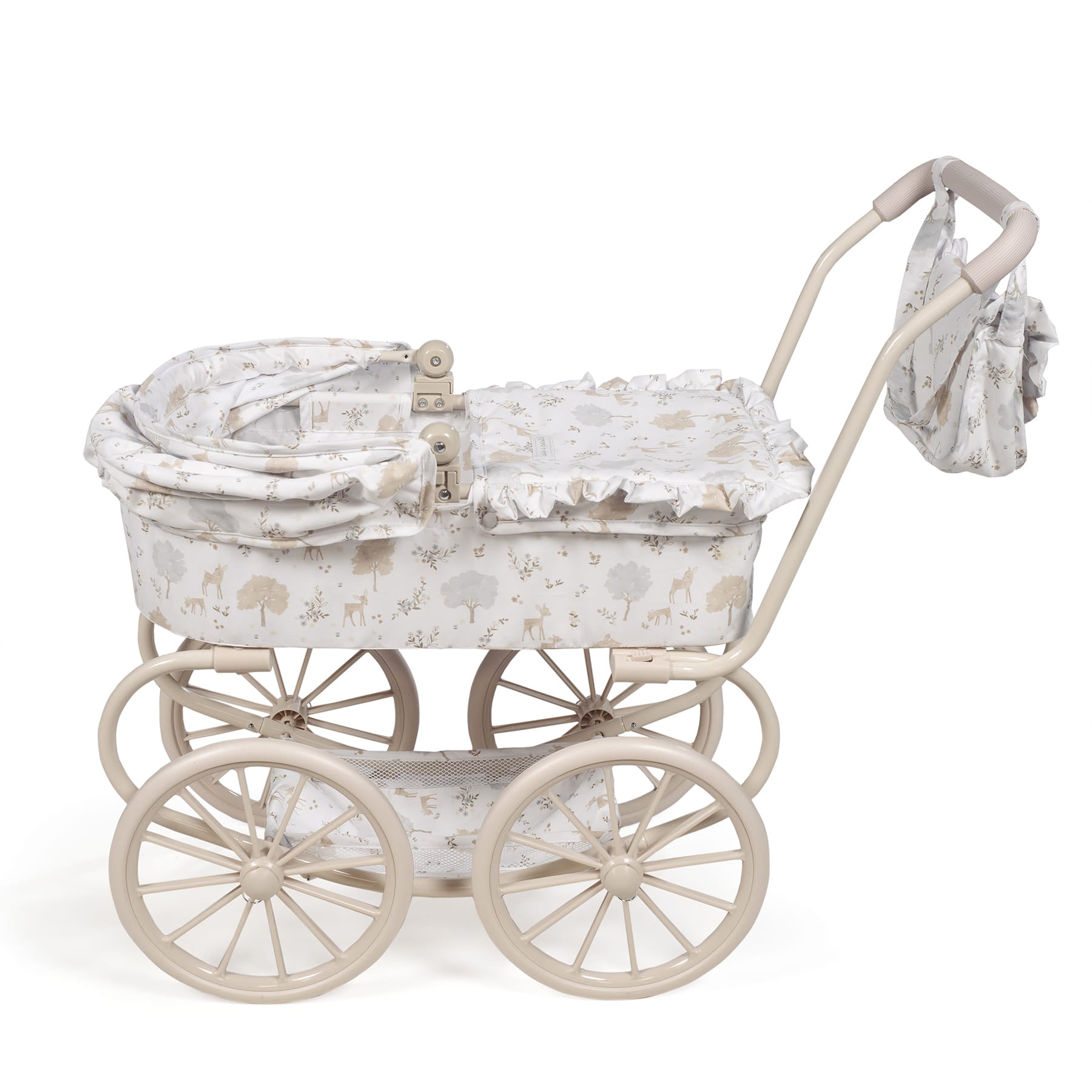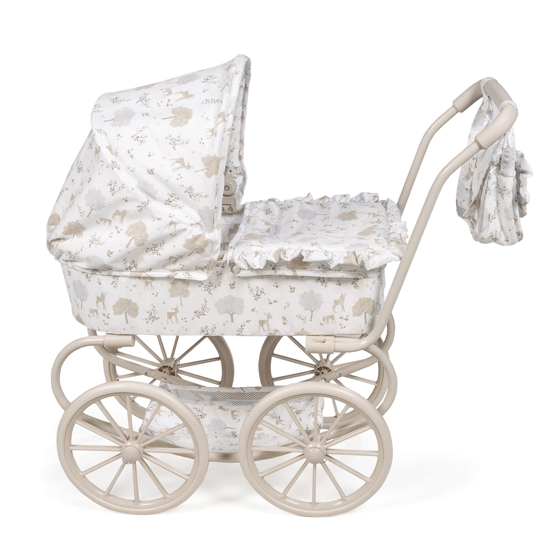 Klasičan i romantičan dizajn: Inspirisan dečijim kolicima koja su se nekada koristila, ima čvrst okvir sa velikim točkovima tradicionalnog stila i prostranu kolevku, što budi nostalgiju i bezvremensku lepotu.