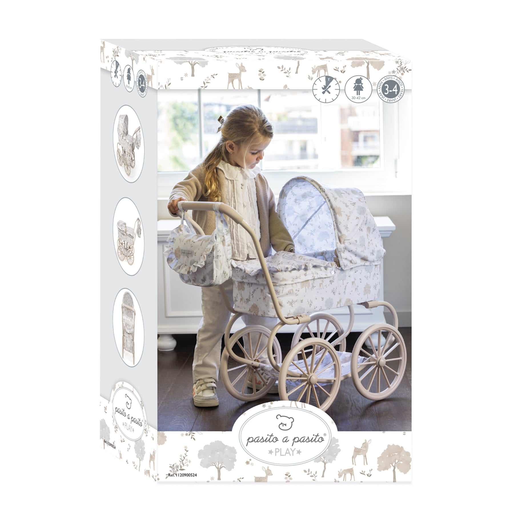 Premium detalji: Pažljivo završena sa volančićima i besprekornom izradom koji ističu kvalitet i brigu brenda Pasito a Pasito. Idealna visina ručke: Sa visinom ručke od 68 cm, ova kolica su savršeno prilagođena visini dece uzrasta od 3 do 4 godine, obezbeđujući udobno držanje i prirodno iskustvo igre.