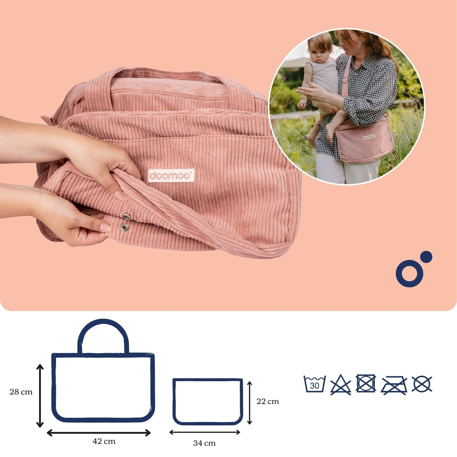 Doomoo torba za mame Corduroy Pink